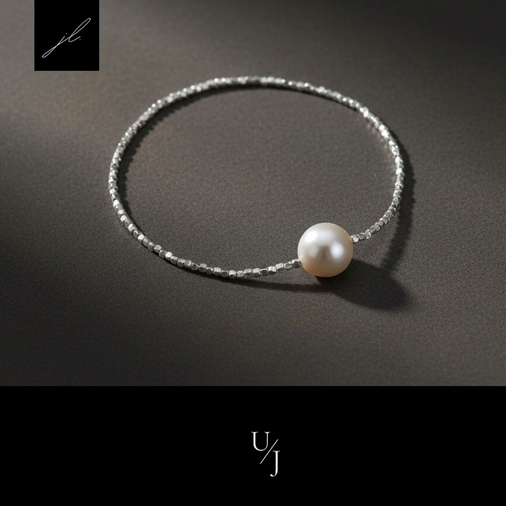 Grace Bracelet is a refined, close-to-the-skin pearl bracelet designed to complement the Grace necklace — delicate, modern, and quietly luminous.   Crafted with tiny silver beads that create a fine, chain-like look, it features a single freshwater pearl as the soft focal point.